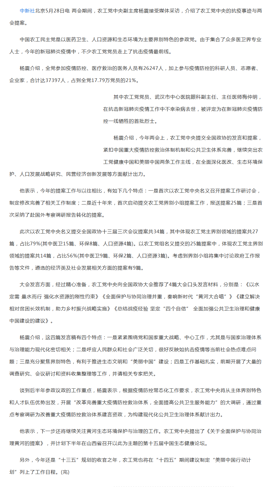 | 【中国新闻网】农工党中央副主席杨震:继续突出农工党“健康中国”“美丽中国”工作主线 |