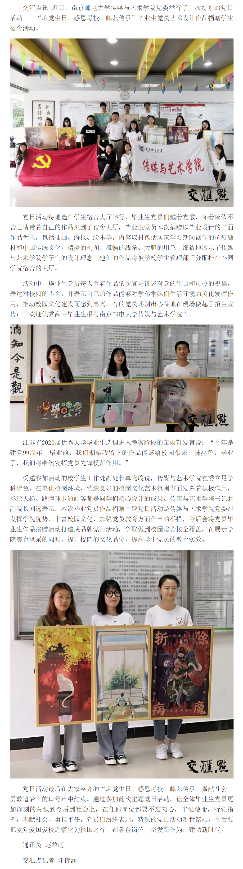 | 【新华日报客户端】爱党 感恩 传承,南邮毕业生党员将抗疫画作留给学弟学妹 |