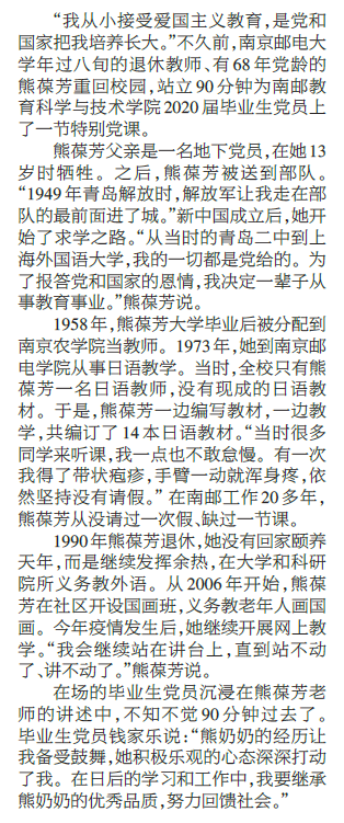 | 【江苏教育报】南邮八旬退休教师为毕业生上党课 |
