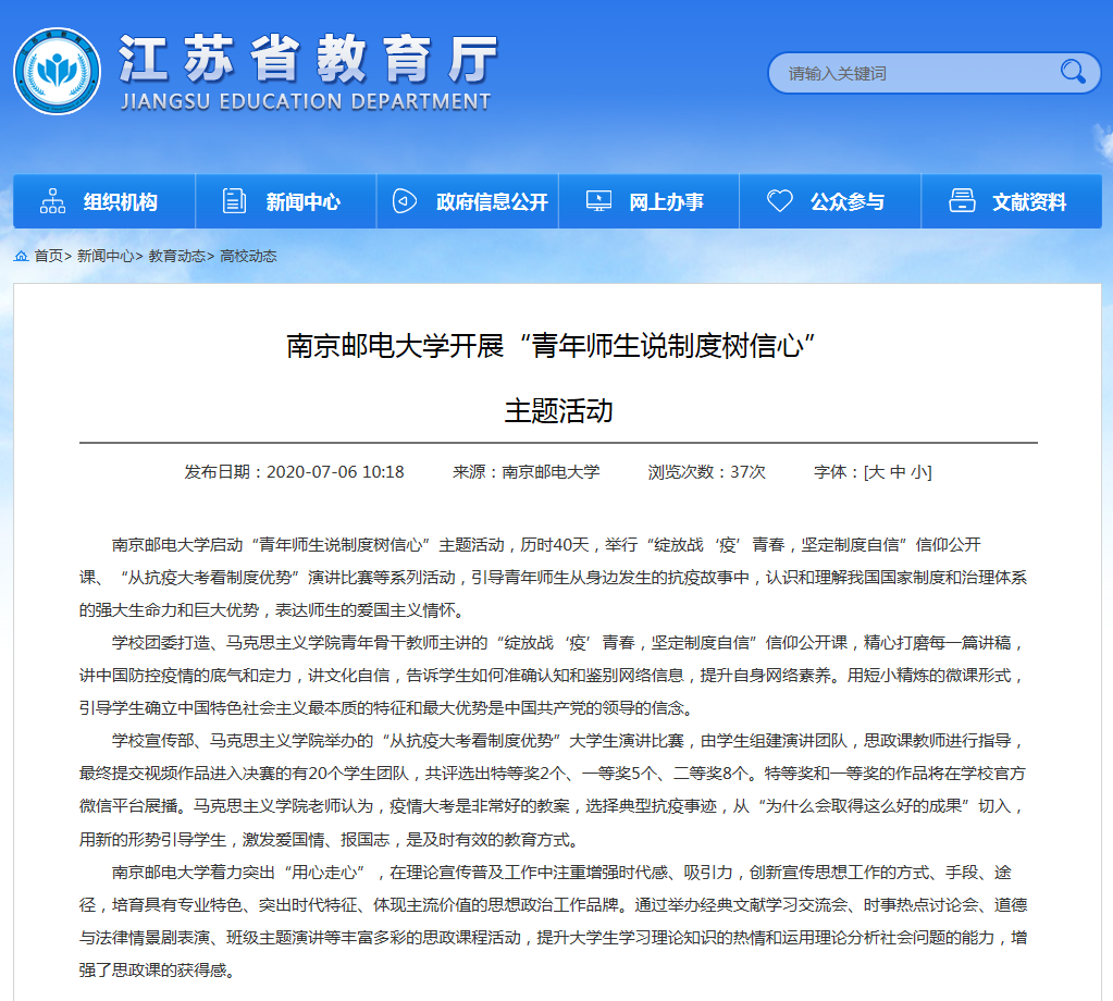 | 【江苏教育】南京邮电大学开展“青年师生说制度树信心” 主题活动 |