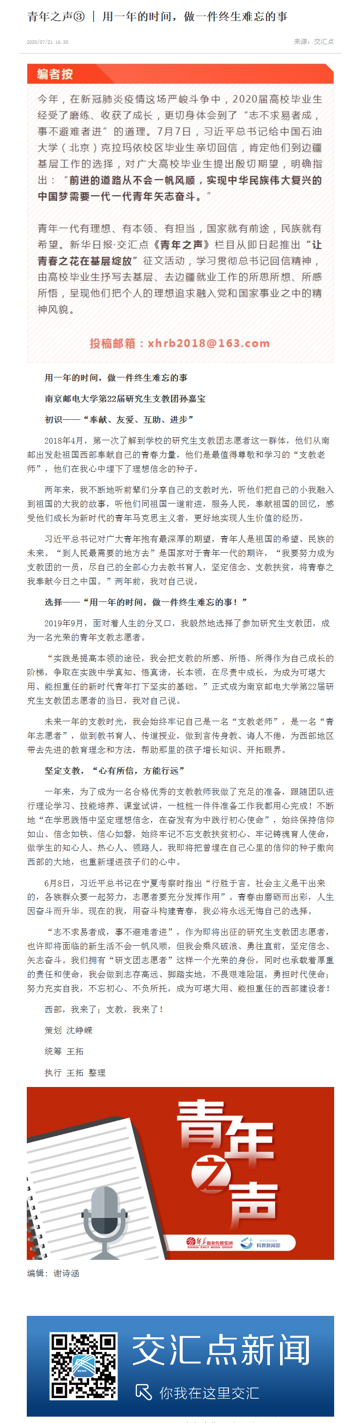 | 【新华日报客户端】用一年的时间,做一件终生难忘的事 |