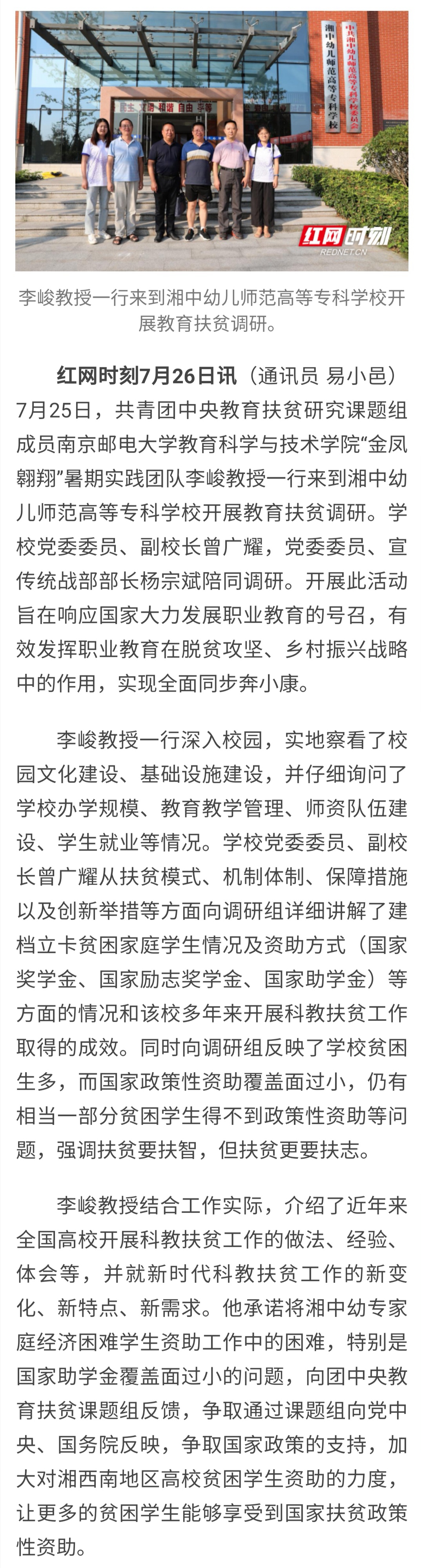 | 【红网时刻】共青团中央教育扶贫研究课题组成员来到湘中幼儿师范高等专科学校开展教育扶贫调研 |