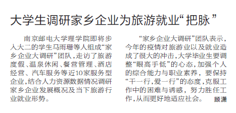 | 【现代快报】大学生调研家乡企业为旅游就业“把脉” |