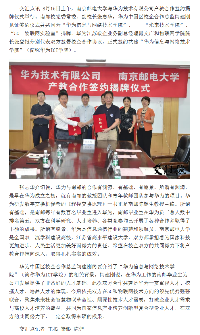 | 【新华日报客户端】共建ICT学院!华为—南邮产教合作签约揭牌仪式举行 |
