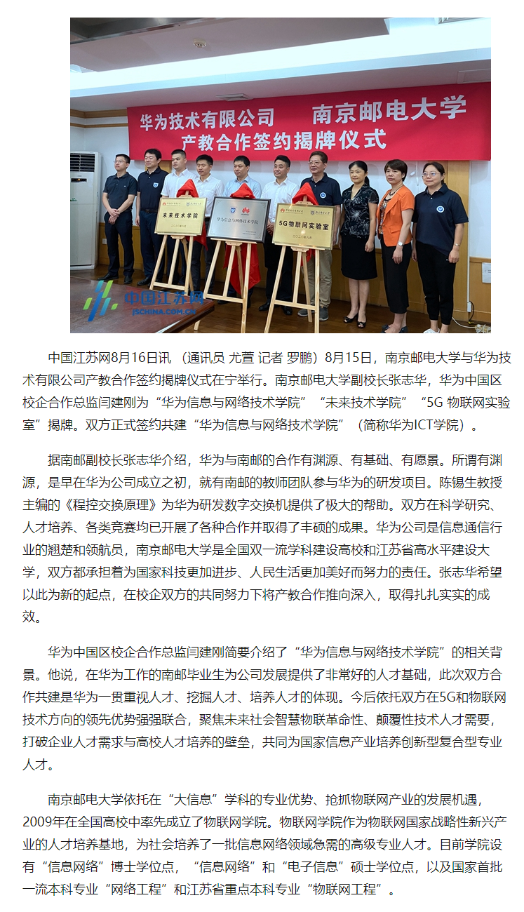 | 【中国江苏网】南邮与华为签约共建“华为信息与网络技术学院” |