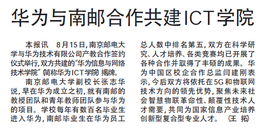 | 【新华日报】华为与南邮合作共建ICT学院 |