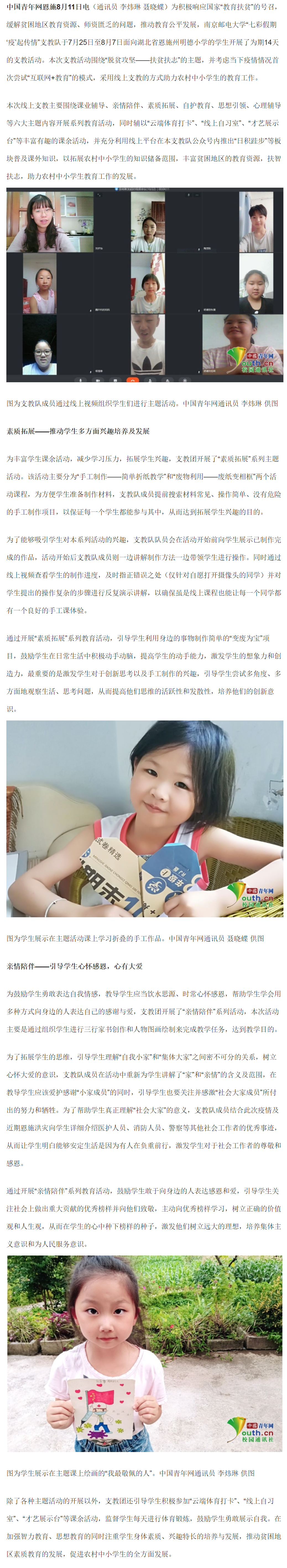 | 【中国青年网】南京学子开展线上支教,助力农村中小学教育工作 |