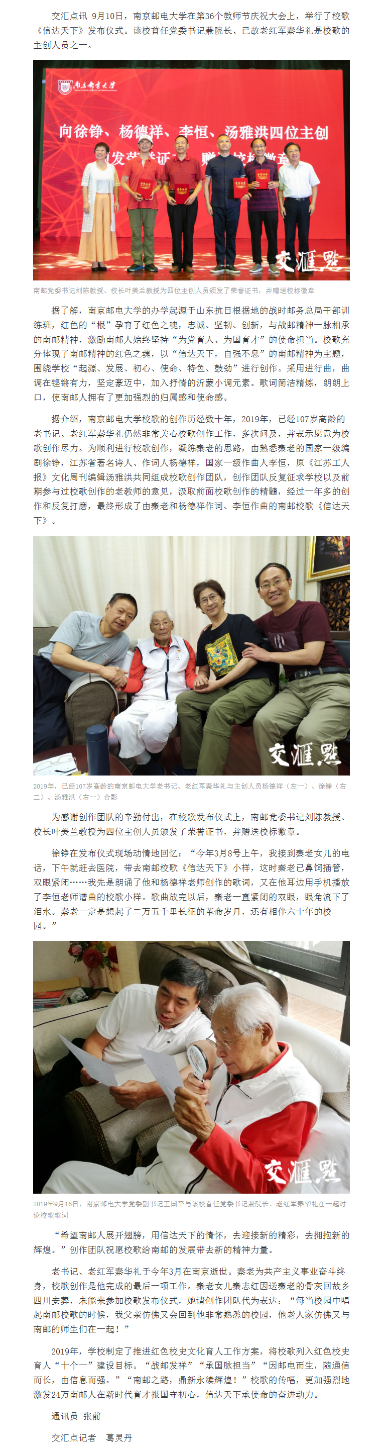 | 【新华日报客户端】已故老红军创作的南邮校歌今日发布 |