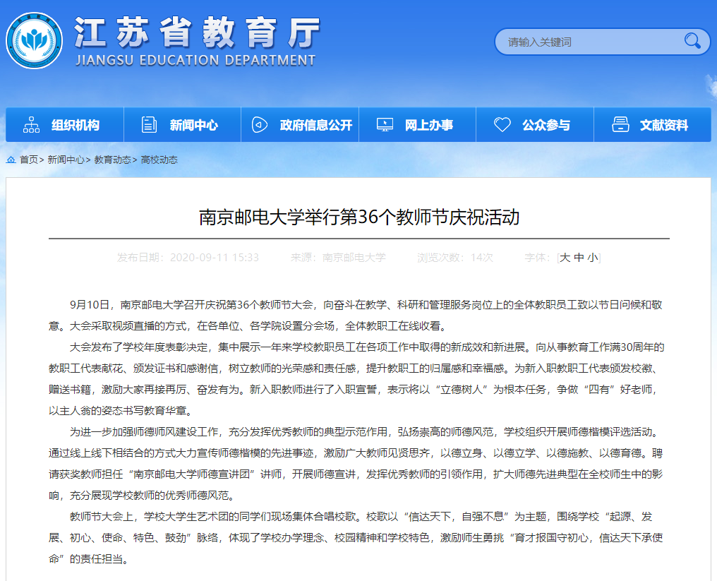 | 【省教育厅官网】南京邮电大学举行第36个教师节庆祝活动 |