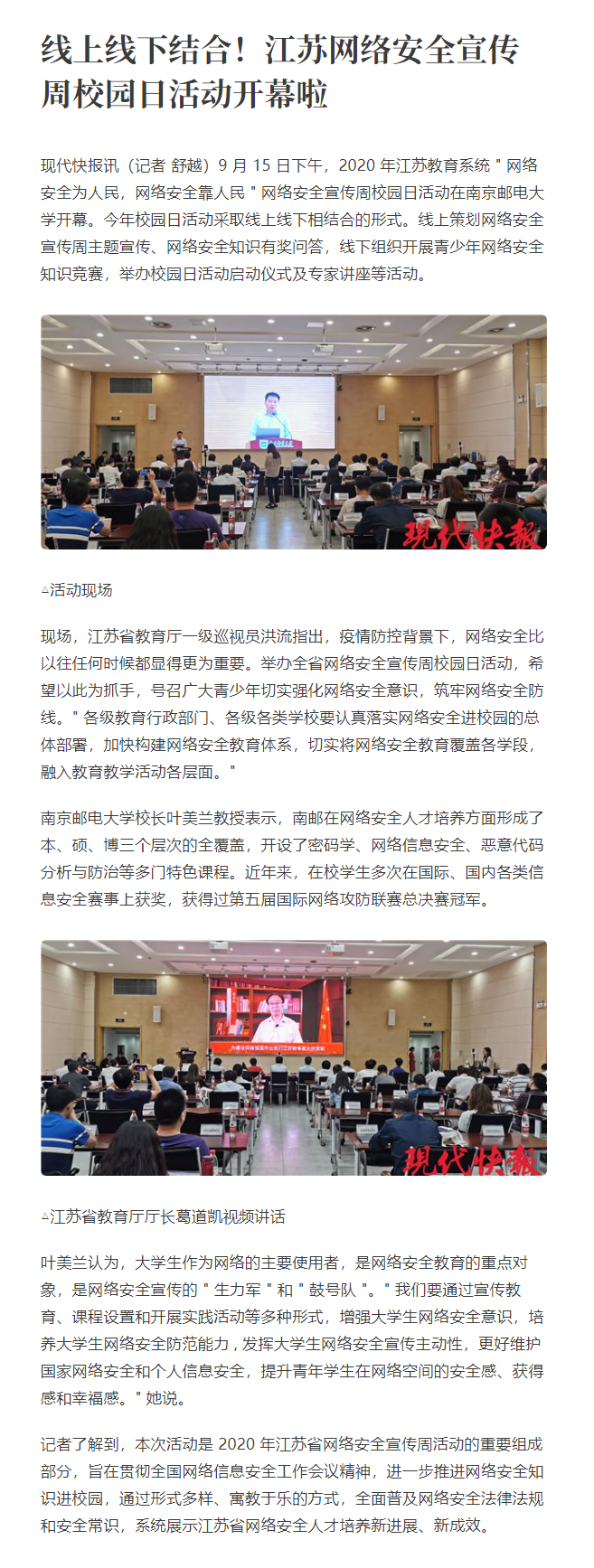 | 【现代快报网】线上线下结合!江苏网络安全宣传周校园日活动开幕啦 |