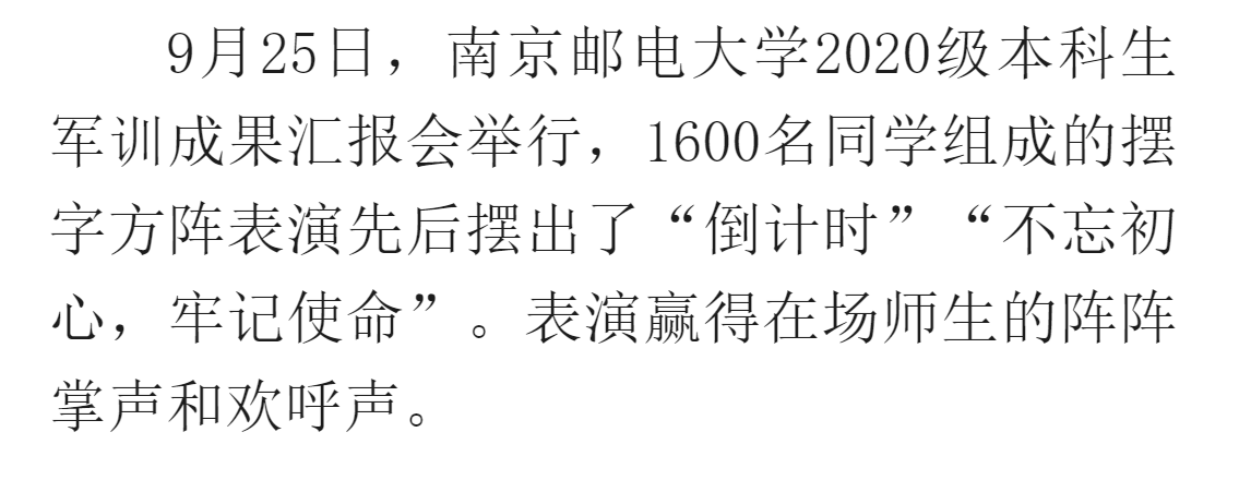| 【新华社客户端】很燃!看南京邮电大学新生军训摆字方阵表演 |