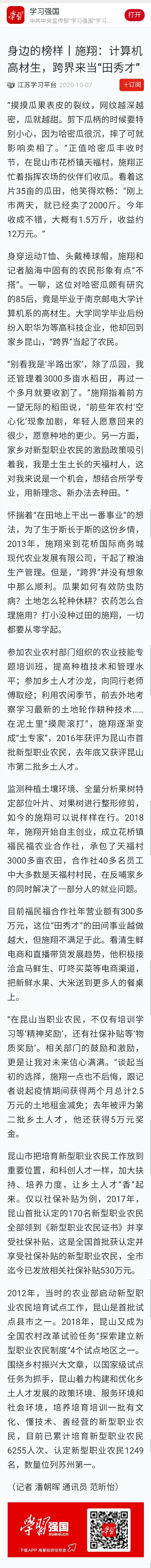| 【学习强国】施翔:计算机高材生,跨界来当“田秀才” |