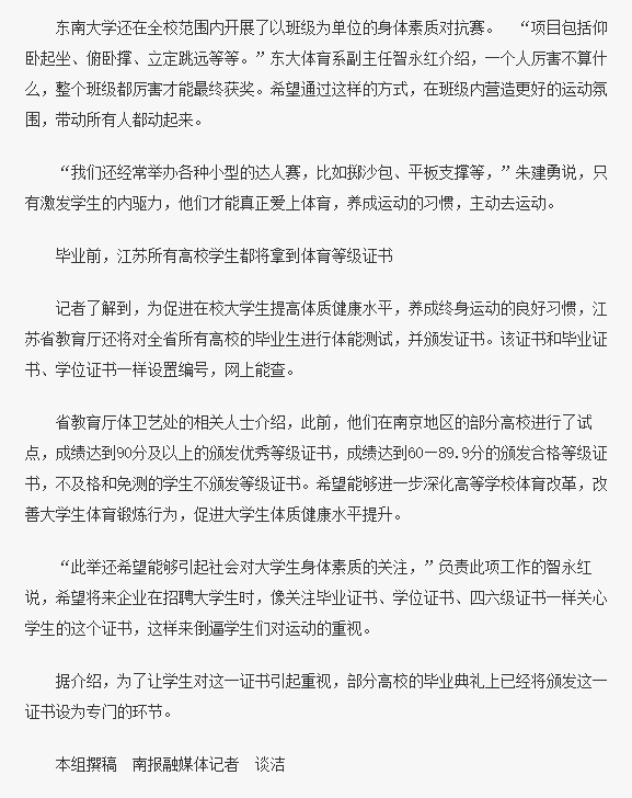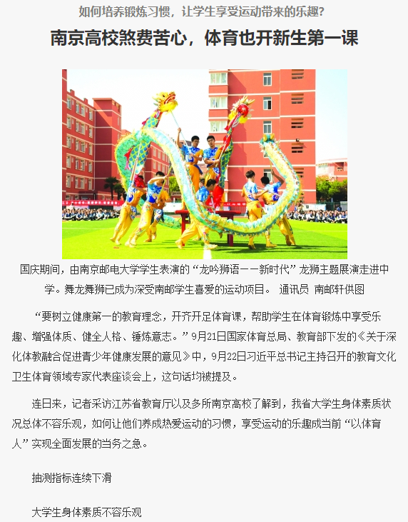 | 【南京日报】南京高校煞费苦心,体育也开新生第一课 |