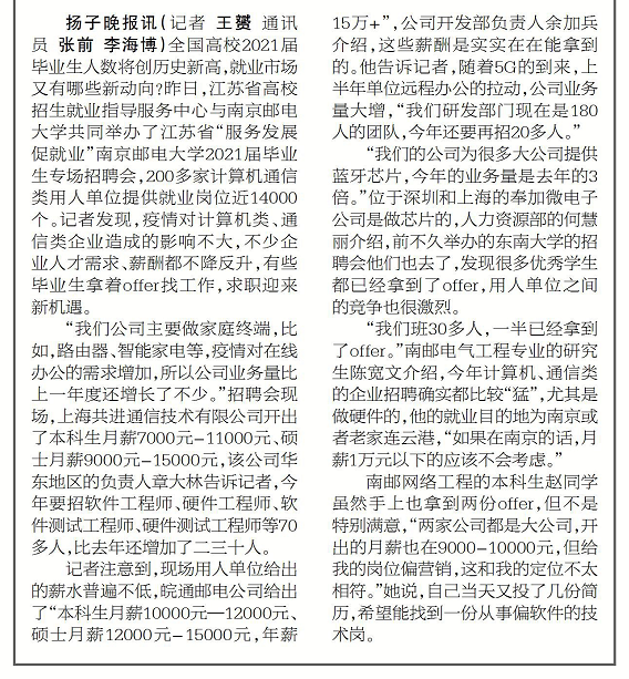 | 【扬子晚报】拿到月薪万元offer,又投出简历 |