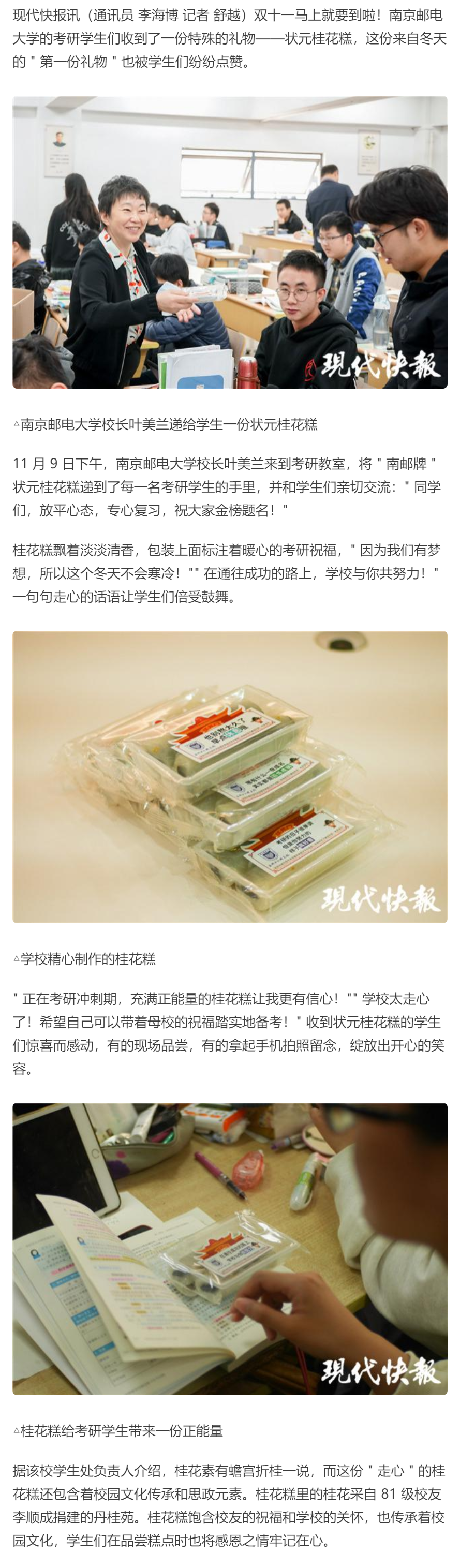 | 【现代快报全媒体】双十一来啦!南京一高校“考研人”收到冬天的第一份礼物 |