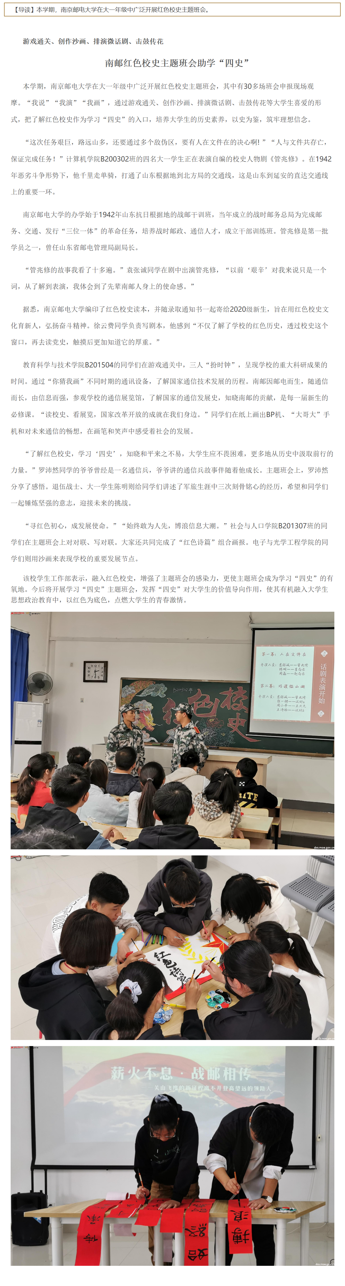 | 【中国大学生在线】南邮红色校史主题班会助学“四史” |