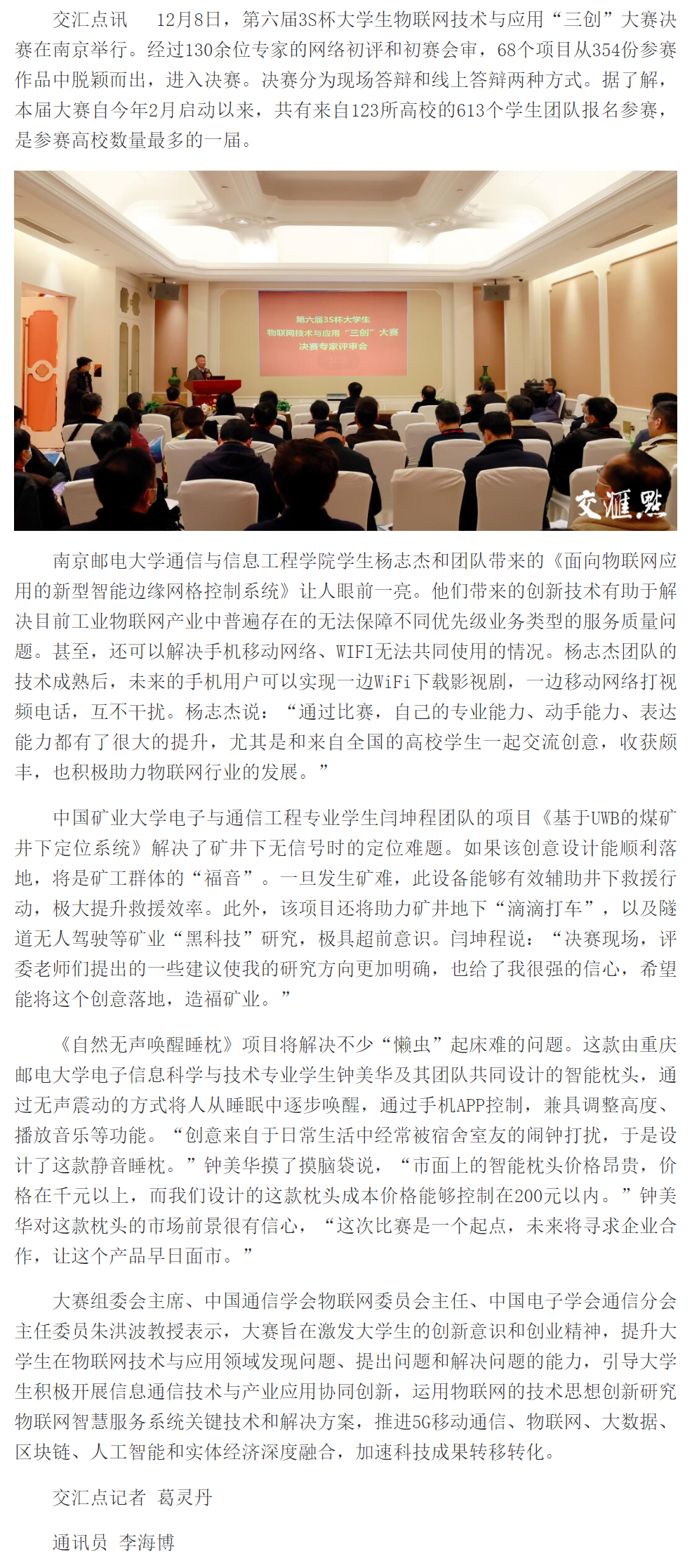 | 【新华日报客户端】3S杯大学生物联网技术与应用“三创”大赛决赛在南京举行 |