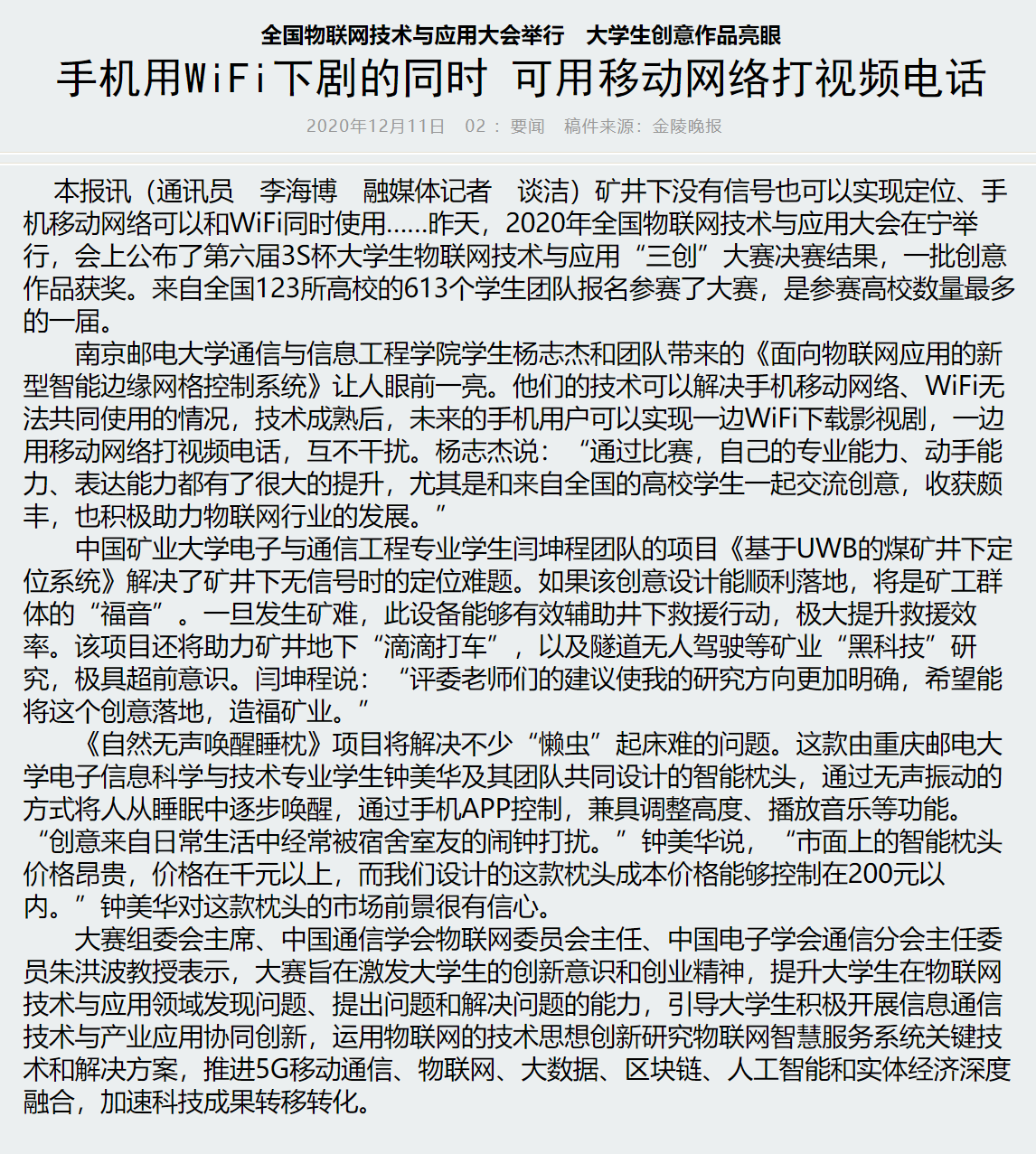 | 【金陵晚报】手机用WiFi下剧的同时 可用移动网络打视频电话 |
