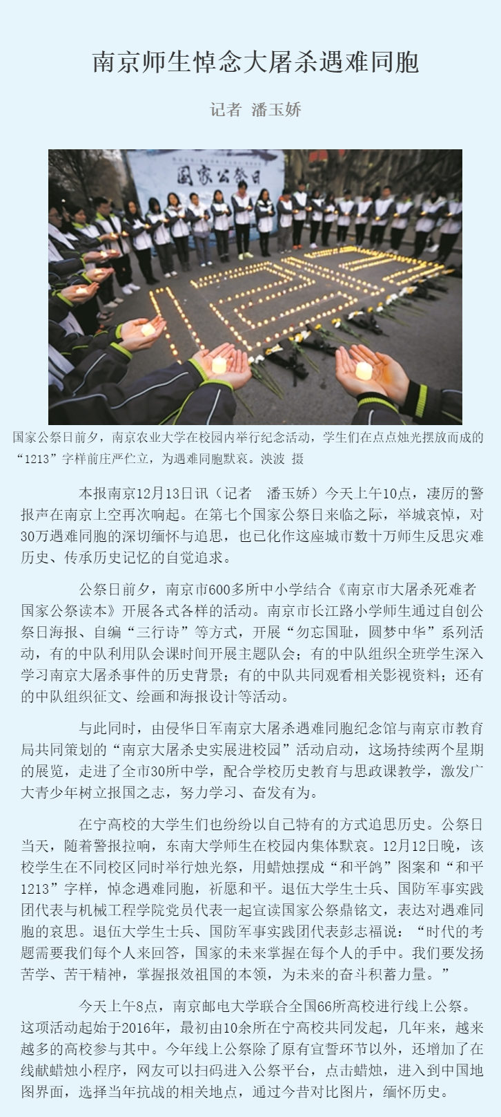 | 【中国教育报】南京师生悼念大屠杀遇难同胞 |