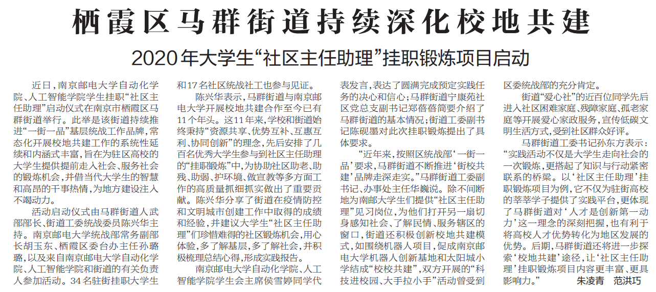 | 【新华日报】栖霞区马群街道持续深化校地共建 |