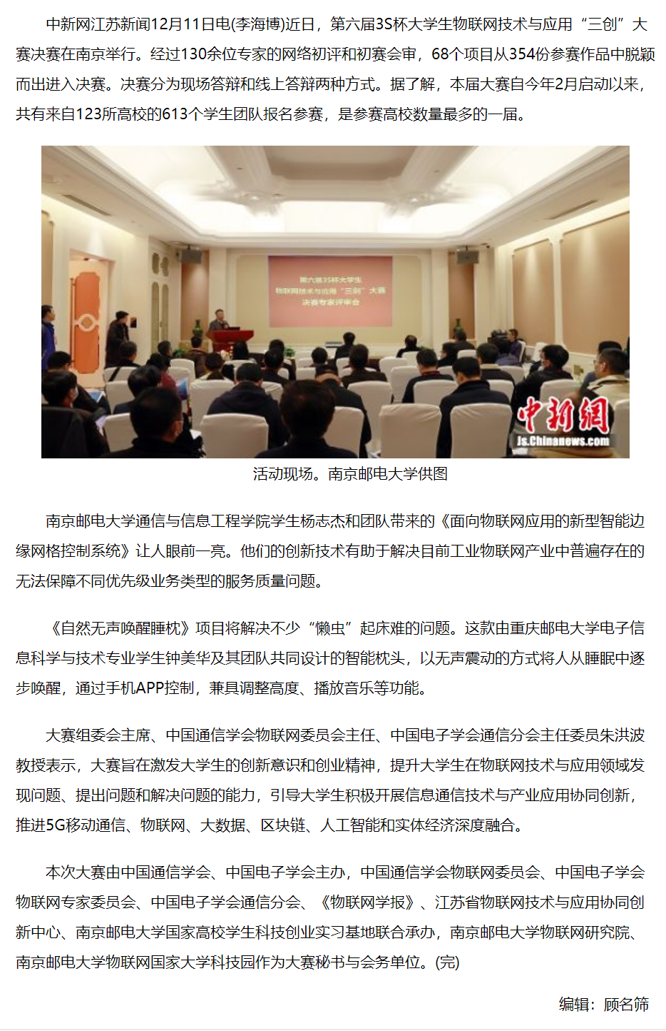| 【中国新闻网】3S杯大学生物联网技术与应用“三创”大赛决赛举行 |