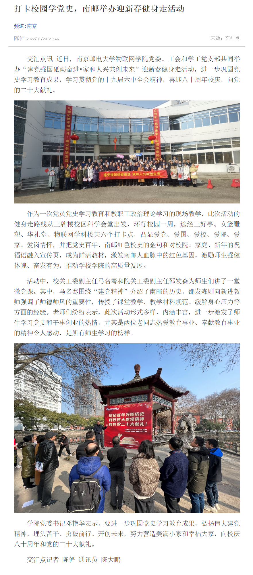 | 【新华日报客户端】打卡校园学党史,南邮举办迎新春健身走活动 |