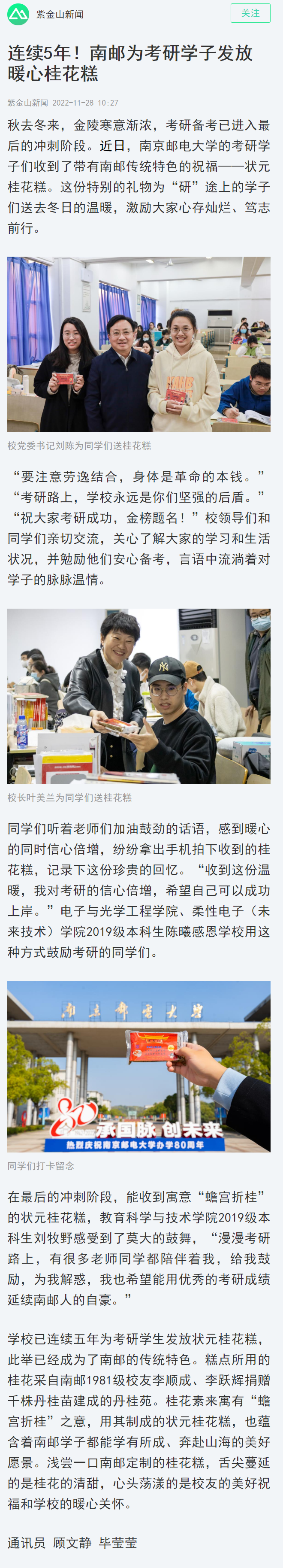 | 【南京日报客户端】连续5年!南邮为考研学子发放暖心桂花糕 |