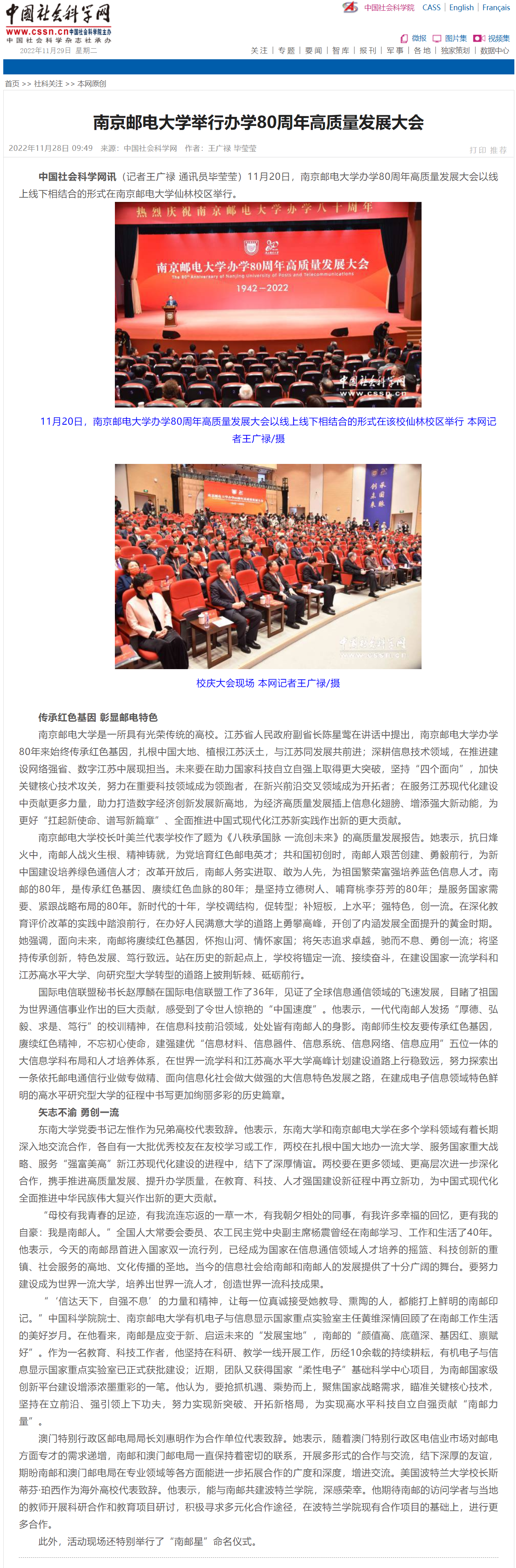 | 【中国社会科学网】南京邮电大学举行办学80周年高质量发展大会 |