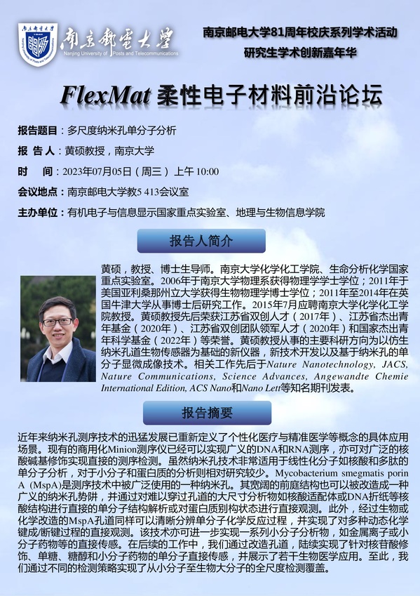| 南京大学黄硕教授学术报告《多尺度纳米孔单分子分析》 |