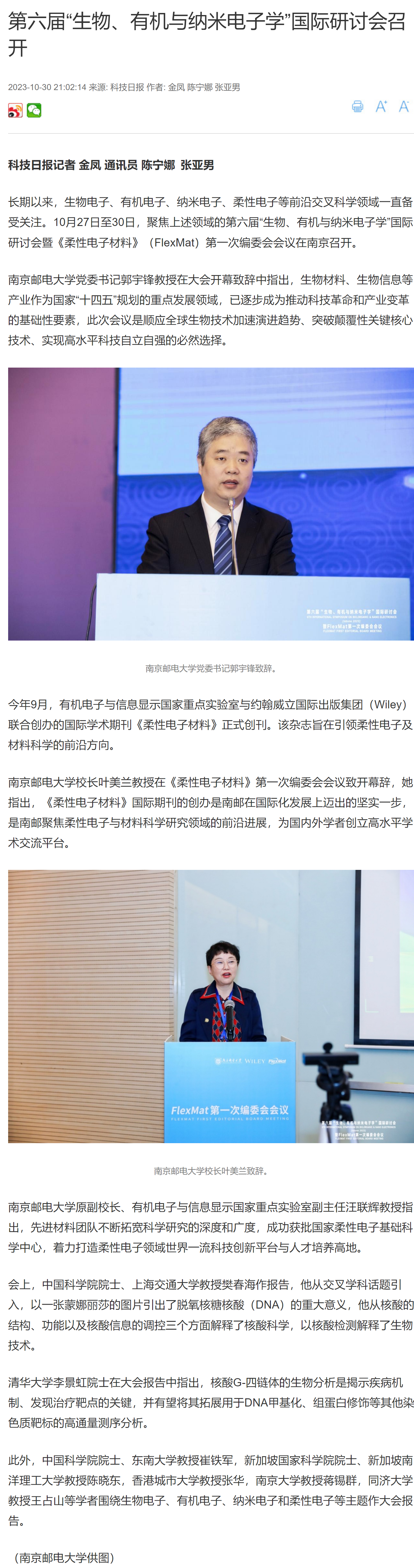 | 【中国科技网】第六届“生物、有机与纳米电子学”国际研讨会召开 |