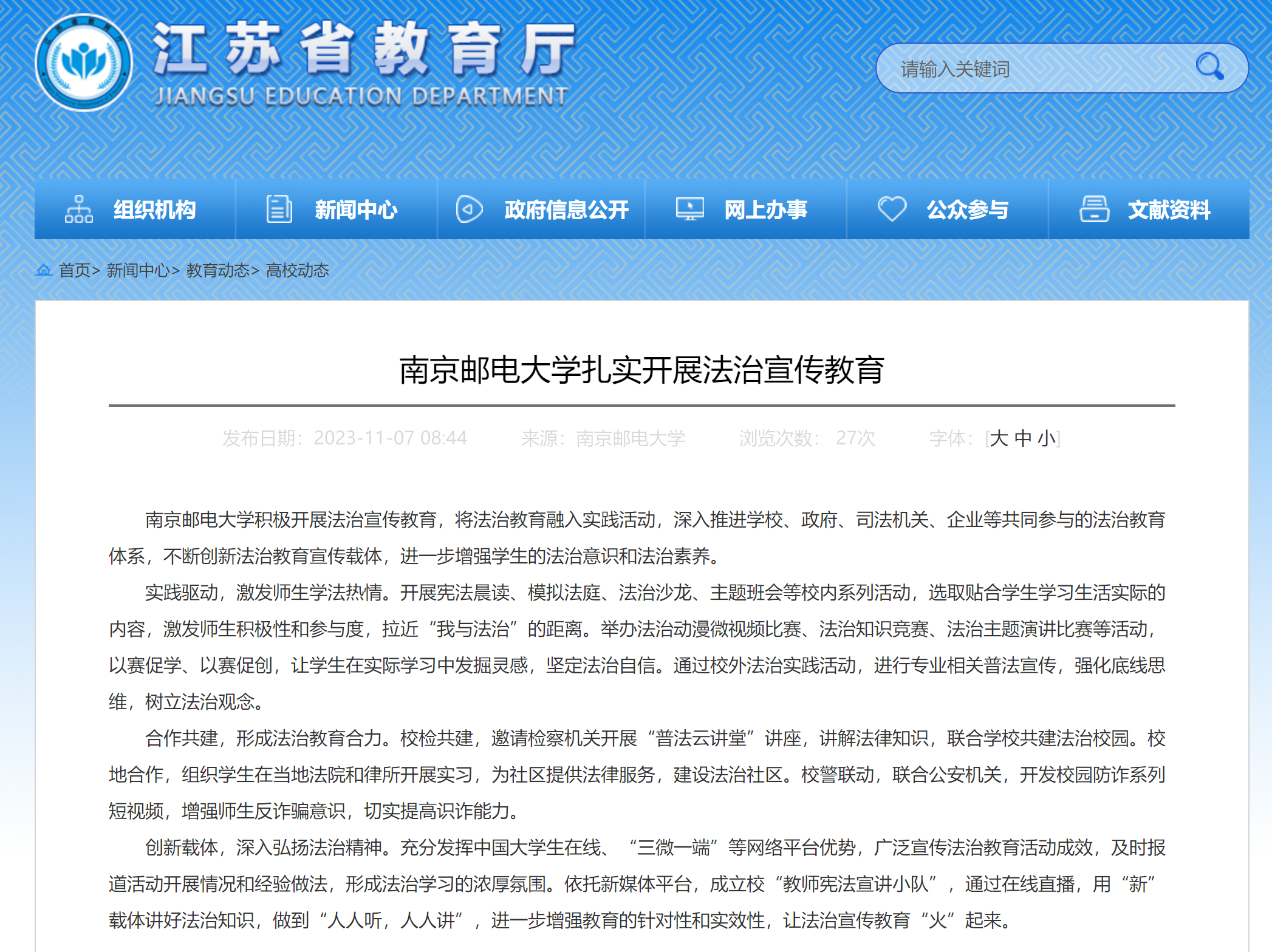| 【省教育厅官网】南京邮电大学扎实开展法治宣传教育 |