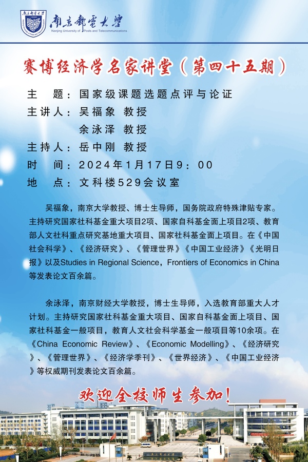 | 发布时间: 2024-01-16 浏览次数: 10 文章来源: 经济学院、社会科学处 |