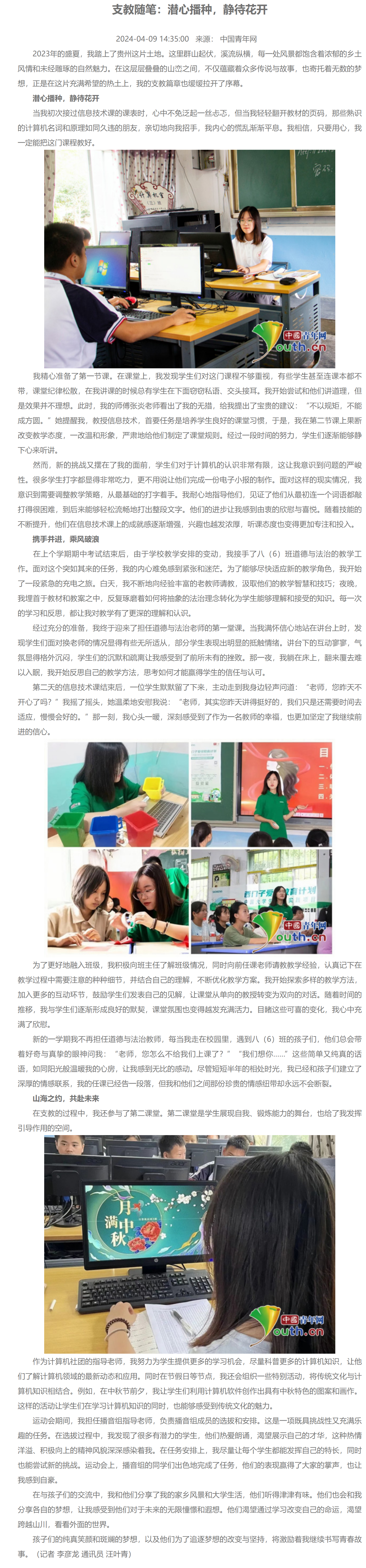 | 【中国青年网】支教随笔:潜心播种,静待花开 |