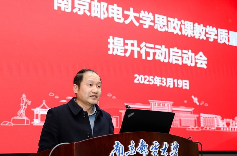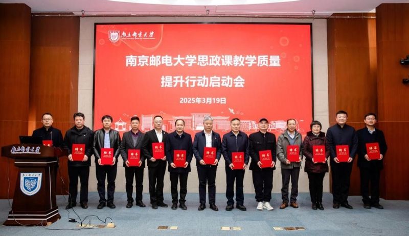 3月19日下午,南邮在仙林校区行政楼中天科技报告厅召开思政课教学质量提升行动启动会。校党委书记郭宇锋,校党委副书记蒋国平,校党委常委、副校长刘青山出席会议,党委宣传部、教务处、研究生院、教学质量监控与评估中心等部门负责人,校督导组全体成员,马克思主义学院全体教师参加会议。刘青山副校长主持启动会。 蒋国平副书记宣读《关于成立南京邮电大学思政课教学指导组的通知》,他指出,教学指导组的成立标志着学校思政课建设迈入专业化、体系化新阶段,要在实践中发挥好教学指导组的专业性。郭宇锋书记为思政课教学指导组成员颁发聘书。