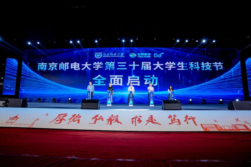 合唱《领航新时代》 与会领导共同按下启动键,南京邮电大学第三十届大学生科技节正式启动。