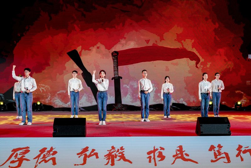 活动现场 开场节目交响乐合奏《红旗颂》,用红色旋律奏响时代强音,表现了中国人民在红旗的指引下,英勇顽强、接续奋斗的革命气概;啦啦操《跃动青春》用活力矩阵诠释青春张力,以整齐划一的挥臂动作与腾空跳跃展现动态美感,舞出南邮学子朝气蓬勃的精神面貌;2025级新生代表用朗诵《何以沂蒙:红土丹心别样红》,带领大家走进沂蒙山区那片浸透热血与深情的红土地,感悟红色精神。