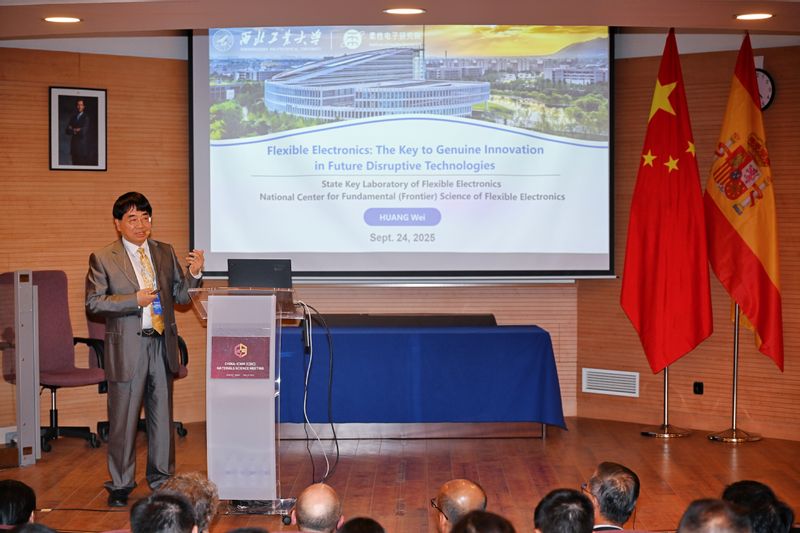 9月20日至26日,应科学技术部和中华人民共和国驻西班牙大使馆邀请,中国科学院院士、柔性电子全国重点实验室主任黄维教授率柔性电子团队赴西班牙马德里,开展高水平学术交流与前沿科技合作。 为庆祝中国和西班牙建立全面战略伙伴关系20周年,9月24日至26日,“中国—西班牙创新日”活动(China-Spain Innovation Day)在西班牙高等科研理事会材料科学研究所举行。 开幕式上,黄维代表中国柔性电子学界作题为《柔性电子:未来颠覆性技术真正创新的关键》的主旨报告,系统阐释柔性电子学的前瞻布局,以及柔性电子器件与技术对航天、国防、能源、医疗、信息等领域的变革性影响。他鼓励中西两国的科研人员深化合作,彰显在全面战略伙伴框架下共建人类命运共同体的责任担当,不断推进全球战略可持续发展。