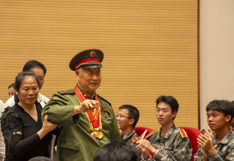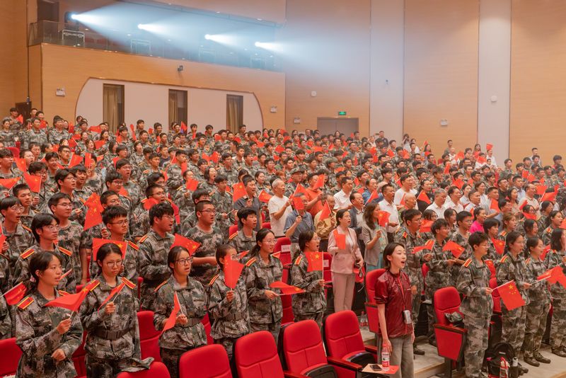 在中华人民共和国成立76周年前夕,为纪念中国人民抗日战争暨世界反法西斯战争胜利80周年,9月29日下午,南京邮电大学与江苏省红色文化研究会共同举办的“热血铸荣光”——弘扬伟大抗战精神 赓续传承红色基因主题文艺展演在南邮仙林校区举行。原南京军区前线文工团的艺术家们与南邮大学生艺术团成员联袂献演,为现场师生带来一场高水准、沉浸式的红色艺术盛宴。展演由原前线文工团著名主持人俞力扬、徐彤主持。中央军委独立功勋荣誉章、国防部解放奖章、华东军区渡江胜利章获得者,95岁的抗战老兵,原中国人民解放军南京政治学院正军职教学顾问吴登志亲临现场,当现场师生得知这位从烽火硝烟中走来的英雄就在身边时,经久不息的掌声响彻全场。