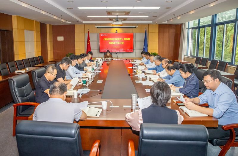 10月16日,南邮党委理论学习中心组举办读书班,专题学习《习近平谈治国理政》第五卷部分章节。校党委书记、校党委理论学习中心组组长郭宇锋主持学习会。