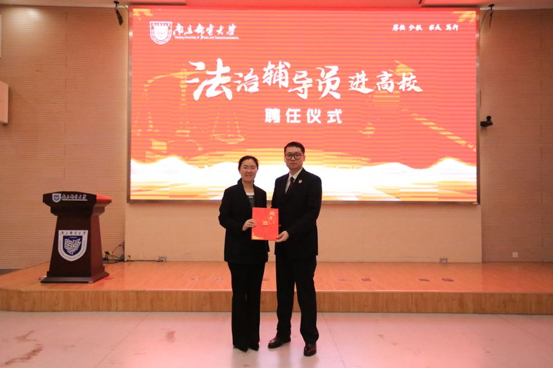 会议现场 会上,保卫部、学工部、法制办分别介绍了南邮校园安全稳定、辅导员队伍全链条成长培养体系和依法治校工作。鼓楼区人民法院法官吴志坚、栖霞区人民检察院检察官陶诚文作交流发言,表示将携手筑牢青年学生法治防线、积极参与校园法治文化建设。 谢平为校外法治辅导员颁发聘书。她表示,南邮将与区委政法单位深化合作,依托红色校史资源筑牢法治育人根基,坚决守牢校园意识形态阵地;聚焦师生法治认知薄弱环节,提前预警违法犯罪风险;完善驻校服务站建设,建立师生维权快速响应机制,协同化解各类矛盾。