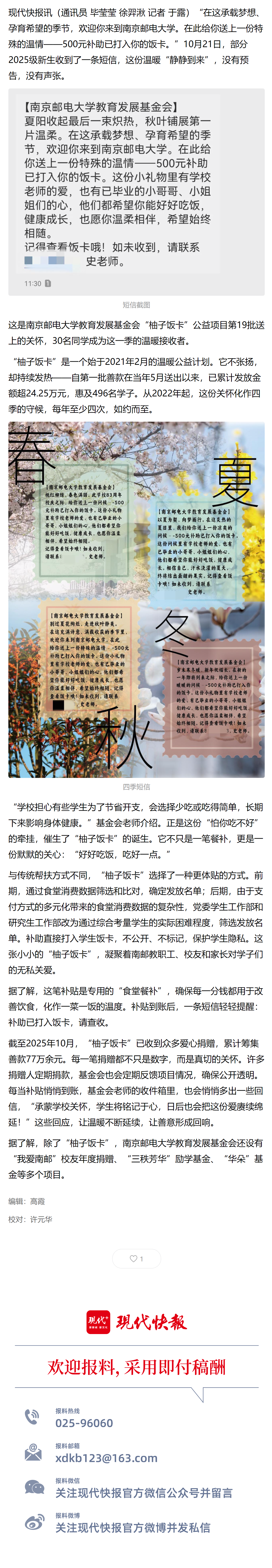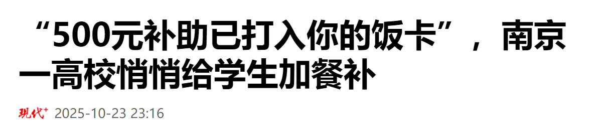 | 【现代快报全媒体】“500元补助已打入你的饭卡”,南京一高校悄悄给学生加餐补 |